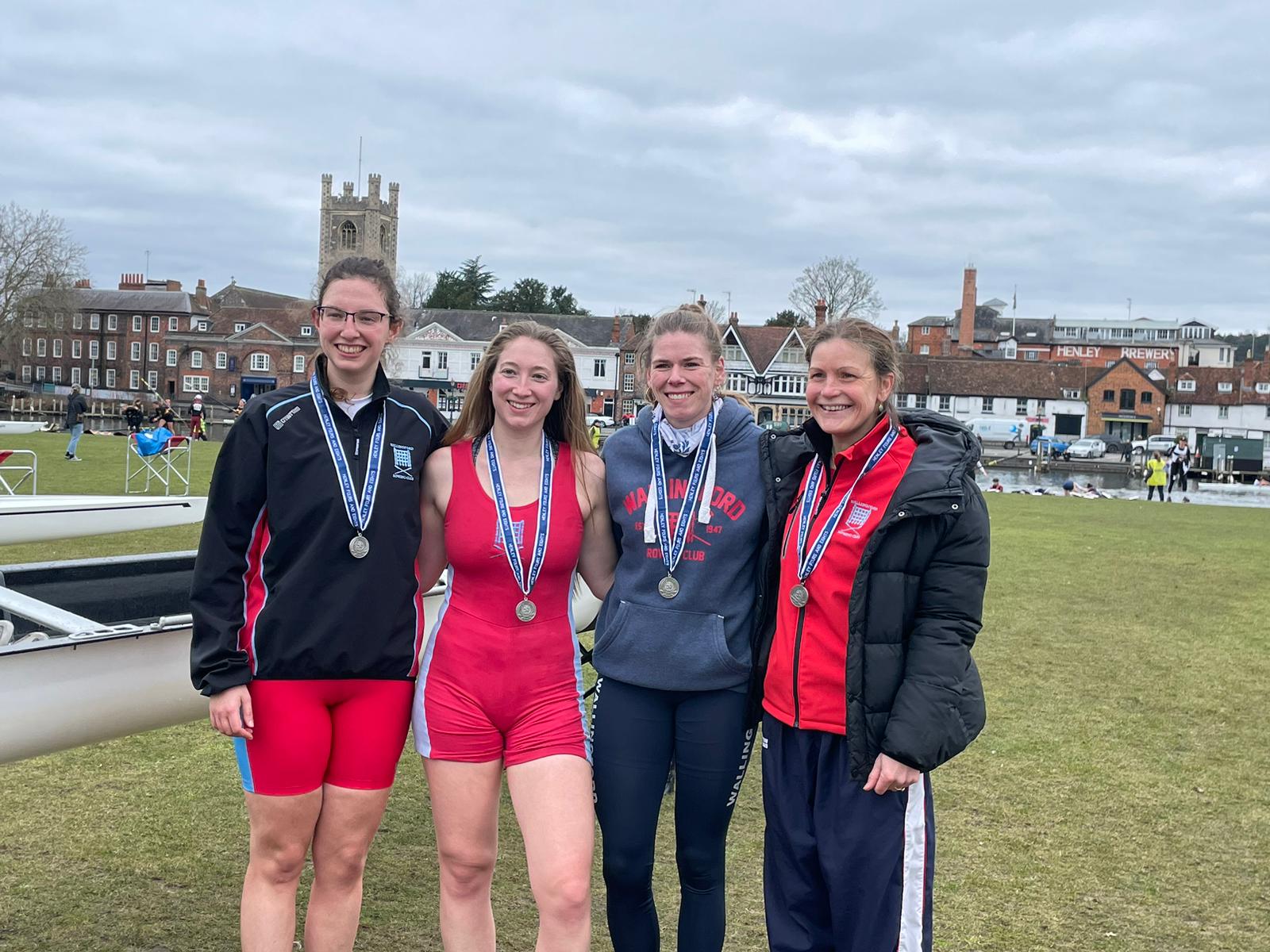 It’s good to see our senior women regularly beating the local clubs and coming back with medals – they are definitely on an upwards curve, following a great training programme. Also winning were our WMasF 4x of Alice Brown, Julia Wilks, Jenny Taylor and Rachel Edge, our MasE 4- of Mike Edge, Dick Smith, Pete King and Steve Pearson, and our J15 4x+ of Rohan Clark, Ben Philipps, Fergus Caulfield, Harry Ireland and cox Orla McNulty who beat a very decent Marlow crew by just 6 seconds, and eight others.