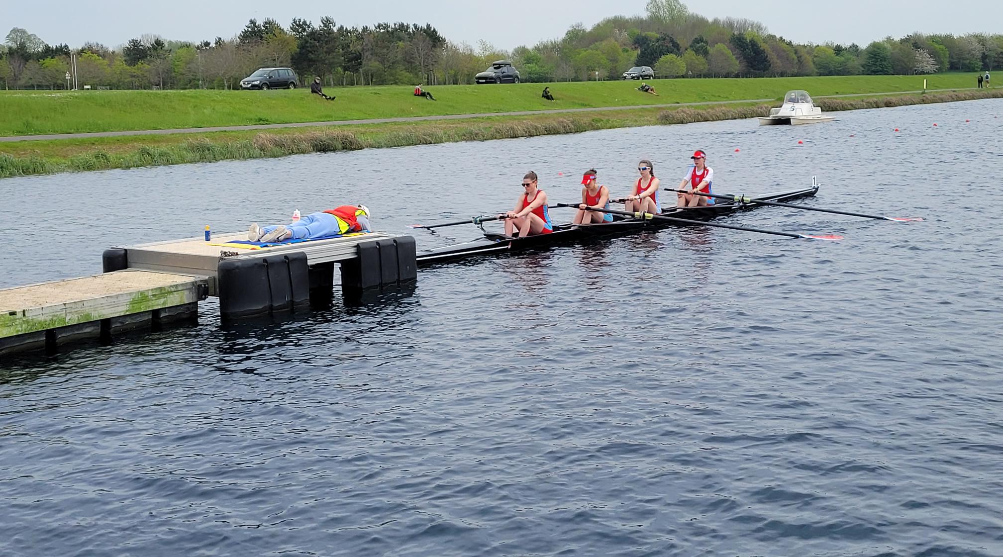 The whole club should be proud. Congratulations also to our crews who raced brilliantly, especially to the Women’s 4- (pictured at the start) who put in two stunning performances to eventually finish second to a crew from Upper Thames, and the WJ16 8+ who beat their nemesis from earlier in the year but also finished second. Well done Wally!