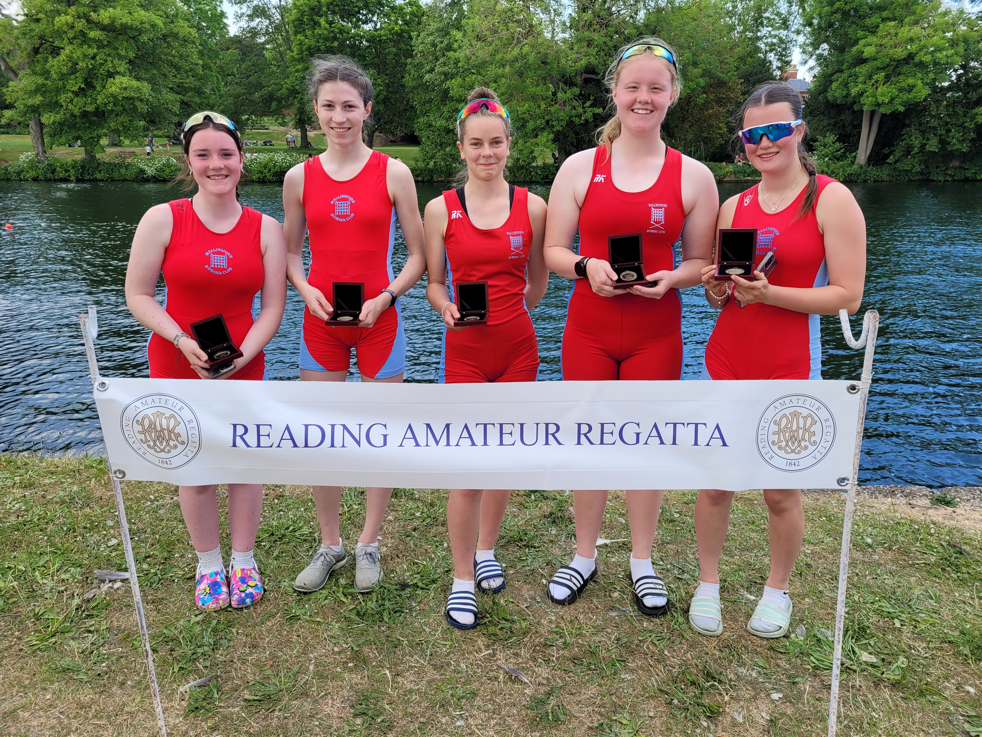 The first baking hot weekend of the year saw Wallingford take over 40 crews to this highly competitive pre-Henley Women’s and HRR regatta. Racing from 9 am through to nearly 7 pm, there seemed to almost always be a Wallingford crew on the course to cheer.