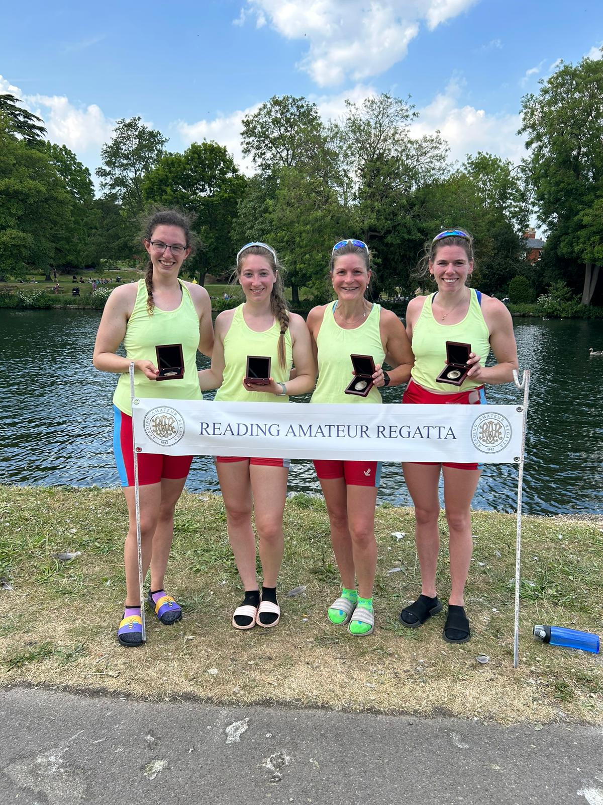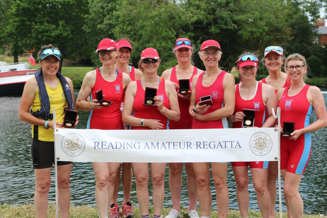 It was a glorious mix of Seniors, Masters and Juniors in a whole club effort at a classic upper Thames regatta. Special thanks to Keith Settle for putting in a magnificent shift including boat loading, towing and managing our senior squad, and to Neil Moroney for his unsurpassable trailer management skills.