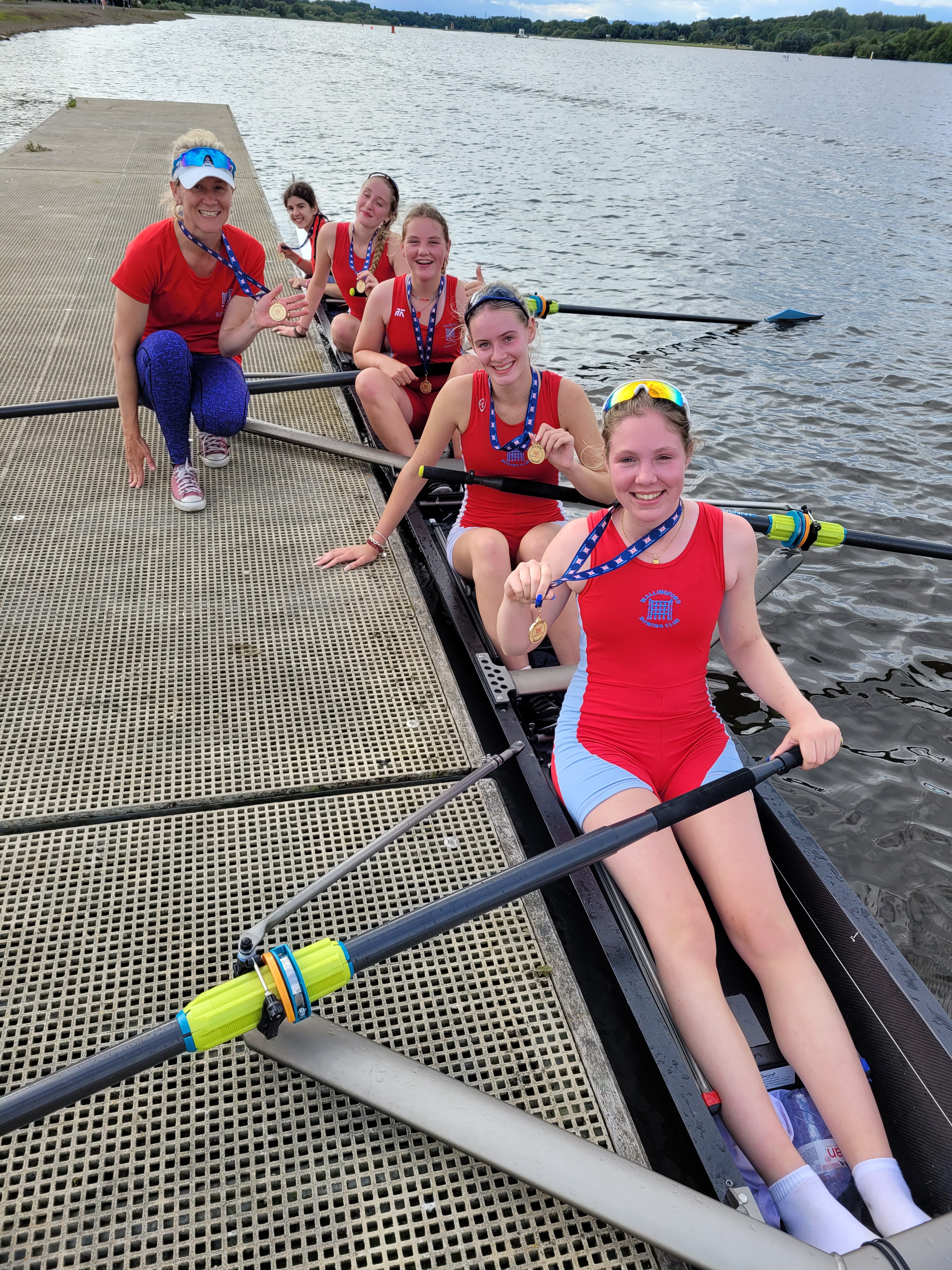 Our exciting squad of J14 boys won bronze in an incredibly tense race adding to the bronze they won at National Schools Regatta. Arthur Liddy, Lewis Strange, Will Andrews, Tom Fanstone and cox Eddie Mould actually won their time trial only to find themselves downed by a canvas in the final. The B crew reached the B final, finishing 11th – another squad with a great depth of talent. Altogether Wallingford had 9 finalists with no fewer than three of them coming 4th, just missing out on the medals.