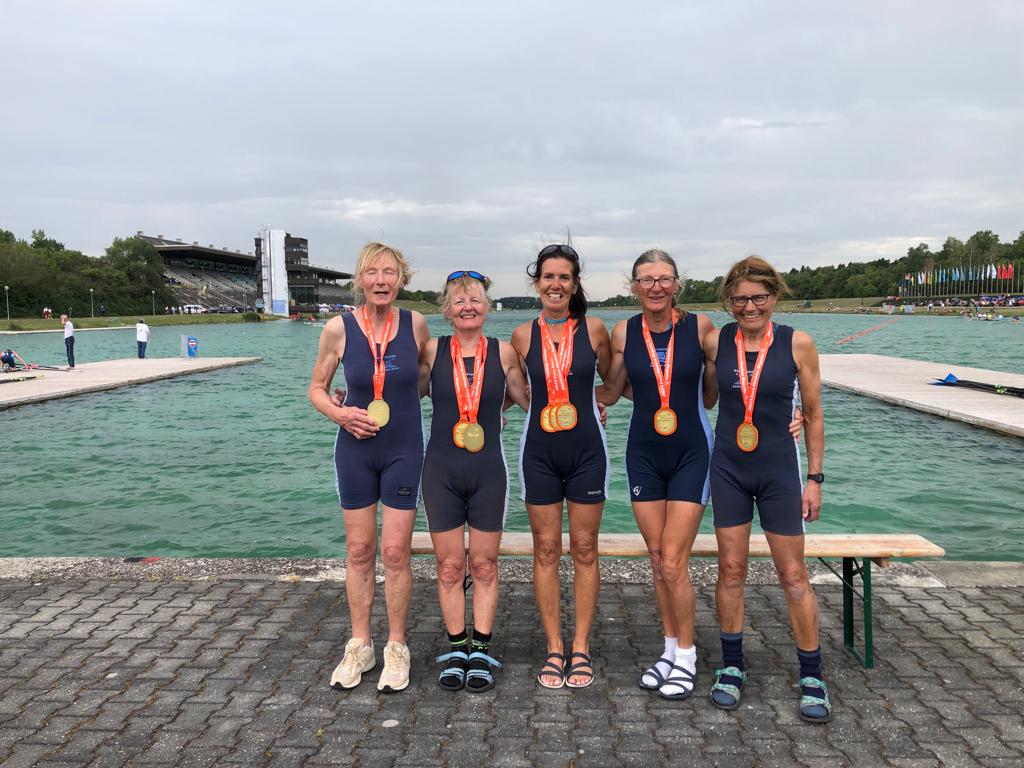 Some of our intrepid Masters went to Munich to race in this year’s European Masters Championships. Despite storms causing the postponement and cancellation of some races, Wallingford athletes came home with wins in composite crews in WMasF and G 4+ (Janet Dutton) and in WMasC and E 8+ (Katie Kapernaros, Lou Wymer, Rachael Haycock), the latter having much loved former Wallingford members Heather Moon-Vogels and Jo Wilby on board too.