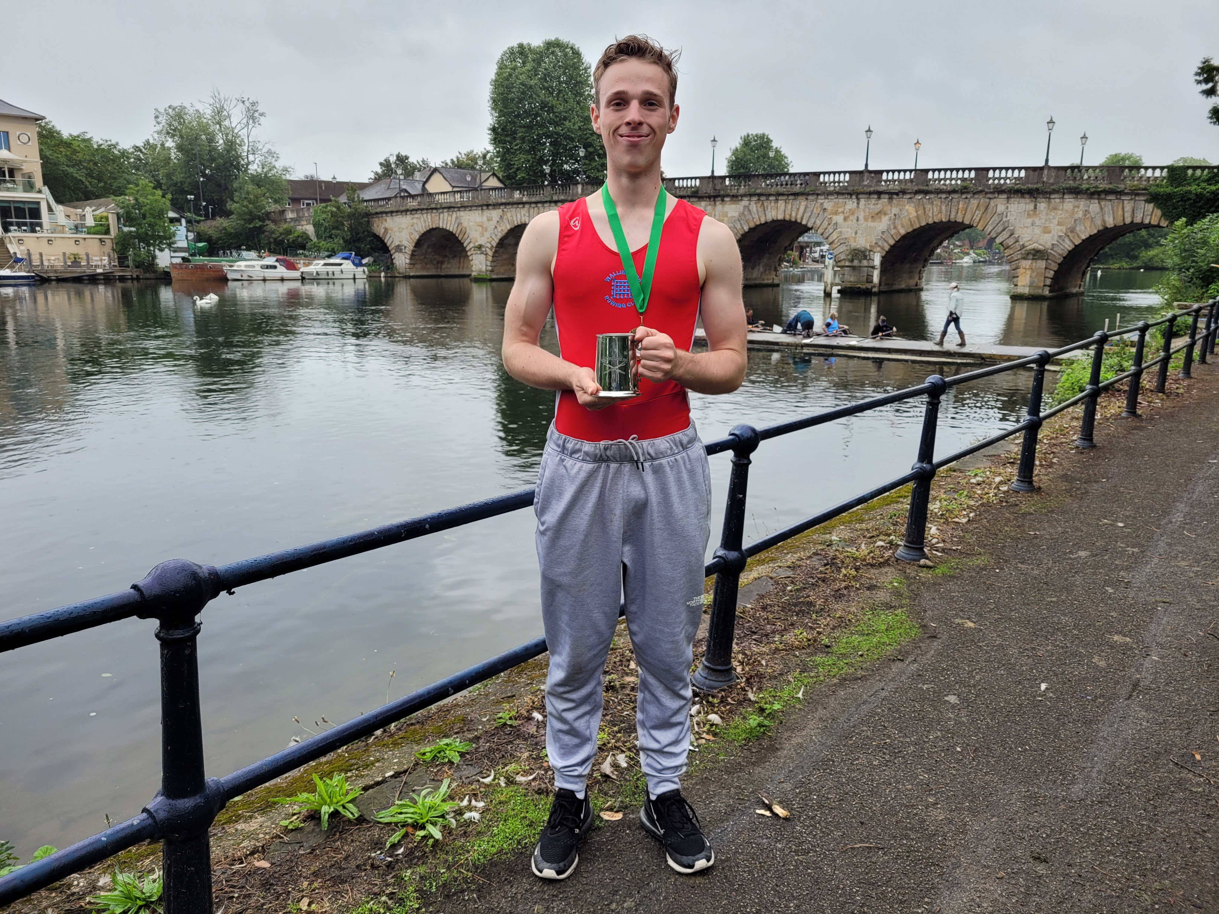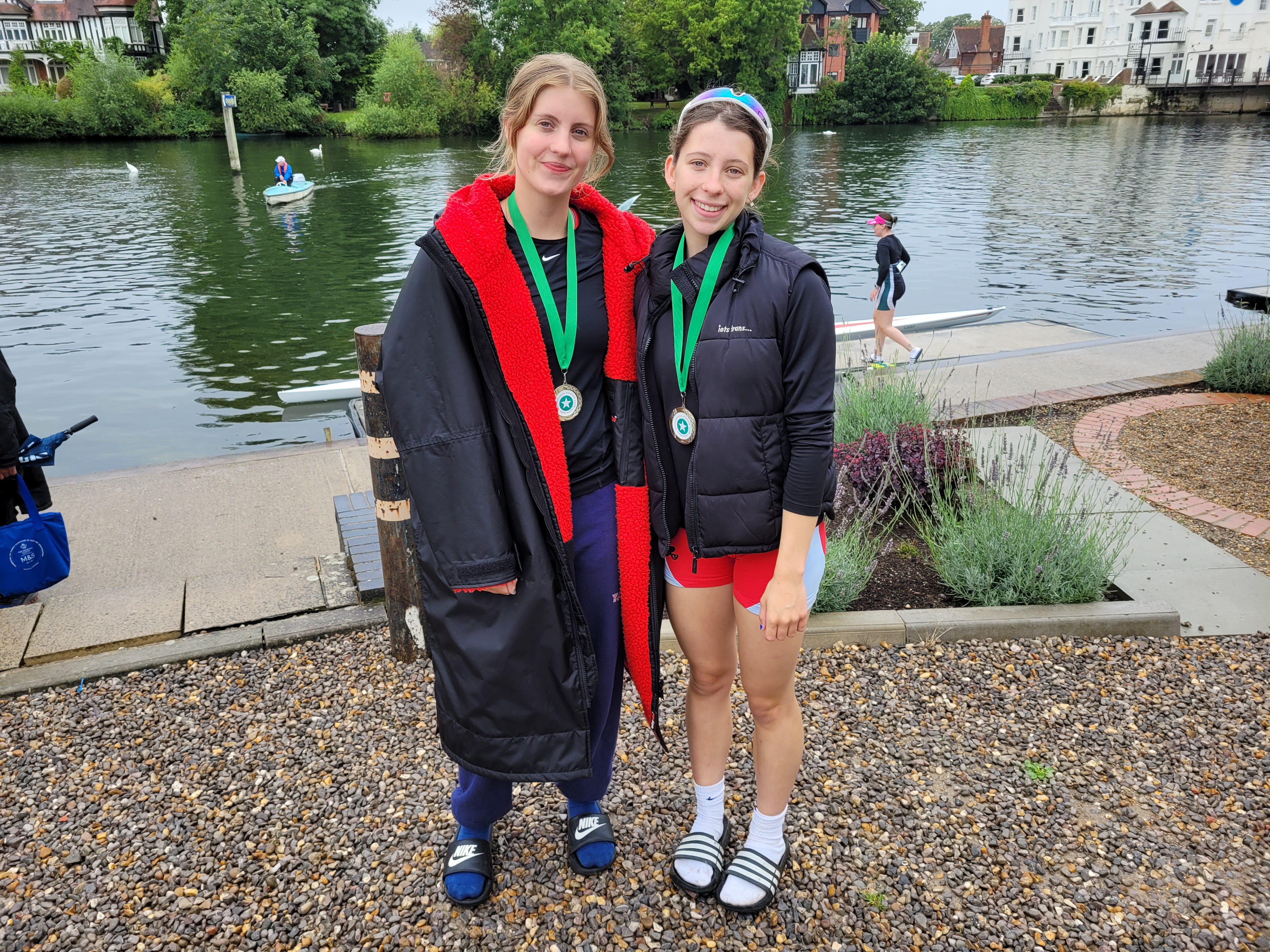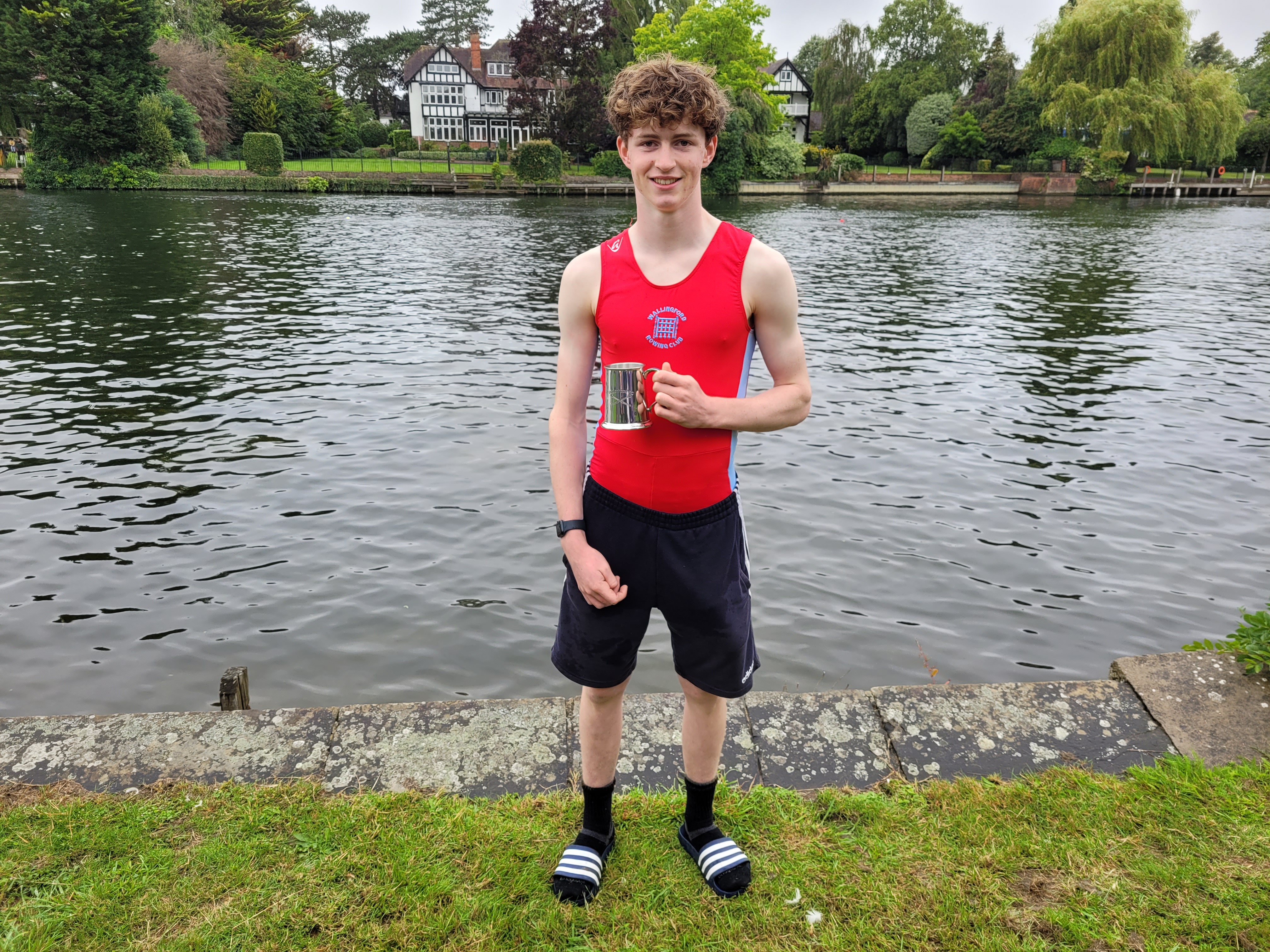 Our Band 1 Mixed 2x of Emma Moroney and Ollie Absolom (Nikki’s son rowing with us over the summer) won the first prize of the day, their adult opponents capsizing dramatically 5 strokes from the finish, but our duo already 1.5 lengths ahead. Michael Bell (also rowing with us for just the summer) won his first ever pot, in J16 1x, quickly followed by his second in J16 2x with Jacob Gunn. His sister Naomi Bell, a full-time member of the Junior squad, won her second consecutive WJ15 1x title after her success at Henley T&V the previous weekend, as well as WJ15 2x with Lauren Fiddy.