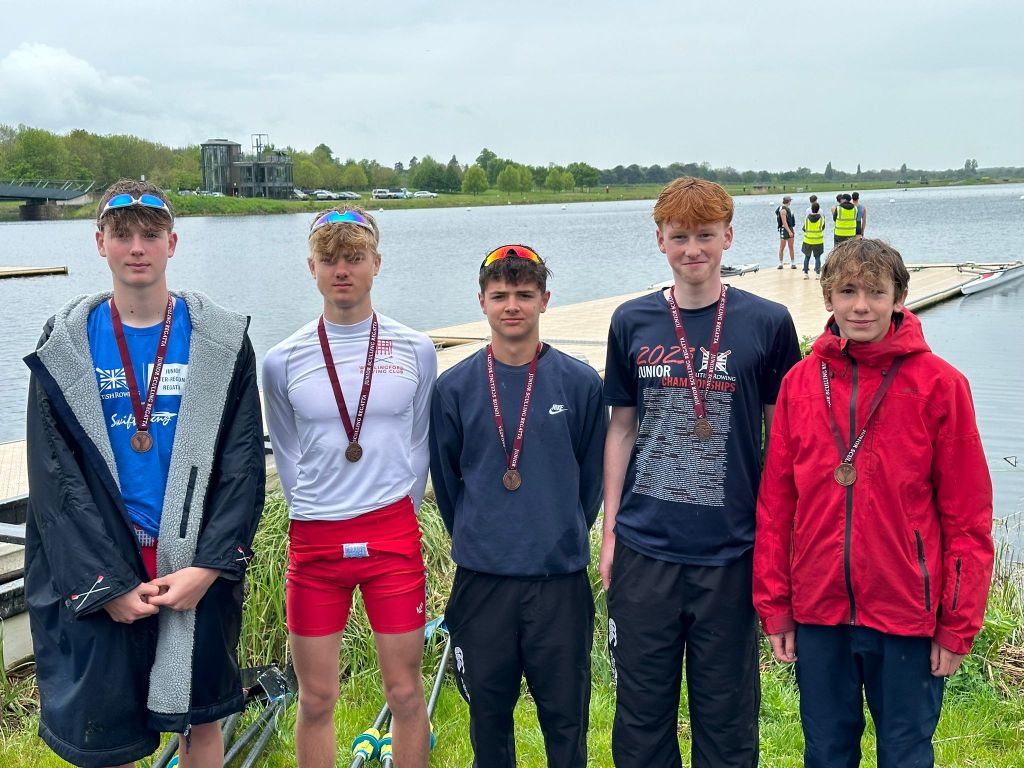 The next day at the Junior Sculling Regatta we nearly broke our record JSR medal tally, agonisingly falling short with seven “A” finalists and two 4th places. Even so, our WJ16 4x won gold in style, several lengths ahead and pushing for the ice cream they had been offered for winning, and both our J17 2x and J15 4x+ bringing home hard-fought bronzes.