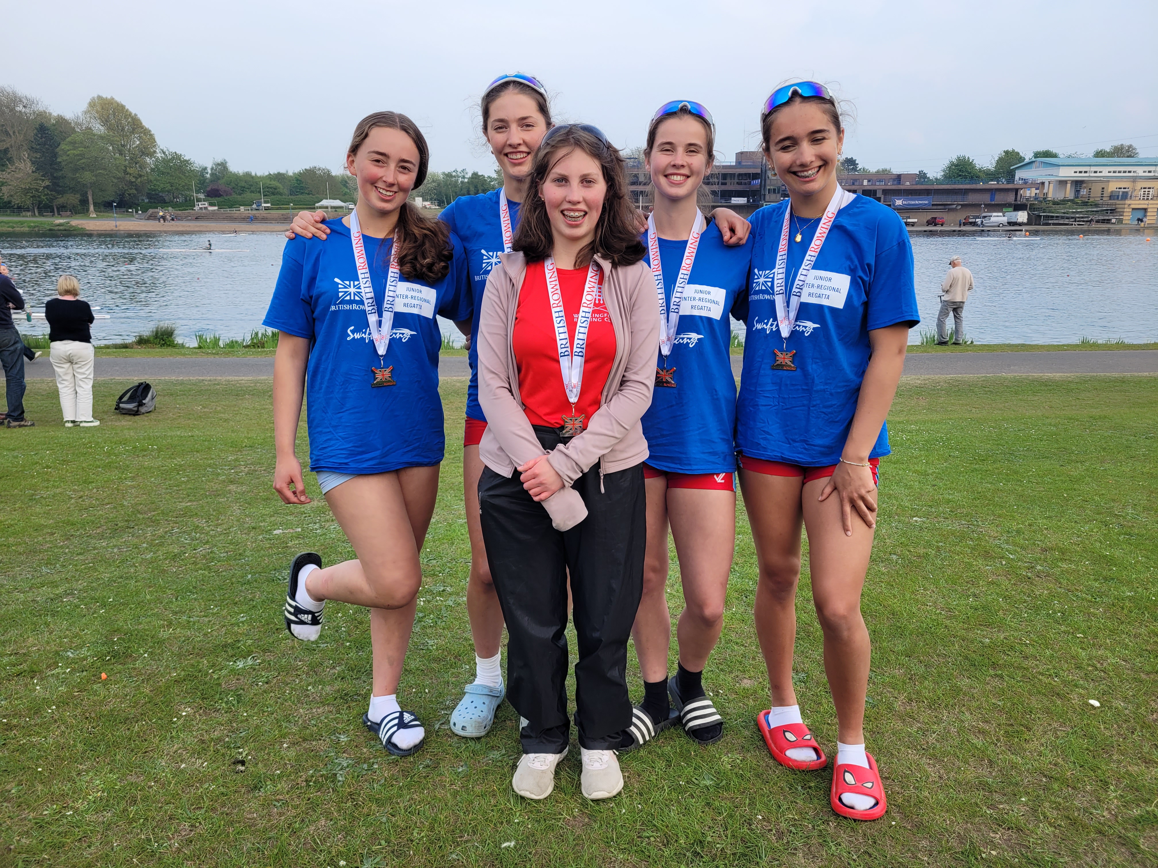 Our Juniors came home with a full set of medals from the Junior Inter Regional Regatta this weekend. Racing for Thames Upriver in a composite with the wonderful Sir William Perkins girls, the WJ16 8+ produced a steely, mature performance to beat the winners of the Schools Head by a length, rowing through them at half way.