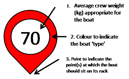 | Blue | Experienced crews, e.g. Seniors or J16-18 | Experienced crews should use blue boats for training unless they have express permission to use a red boat. |