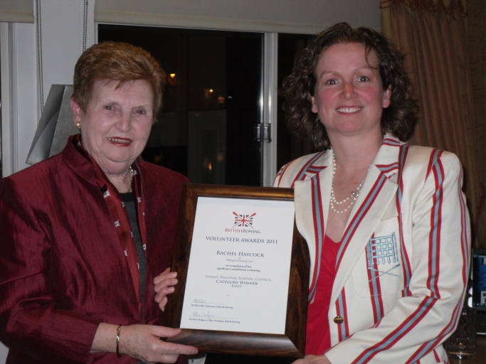 Huge congratulations to Wallingford Rowing Club’s Rachael Haycock who was recently presented with an award for her outstanding volunteer work. Over the past 15 years, Rachael has played a significant role on the Wallingford Rowing Club events committee. Since 2001 she has been entries secretary and has seen the club’s three key events all double in size since she first started working on them. The regatta alone has grown from a medium river regatta, to the largest one day regatta in the UK. In addition to all of this, she has been volunteer manager at the World Rowing Championships 2006 and Junior World Rowing Championships 2011 and she will also be a volunteer at the rowing events for the 2012 Olympics. Rachael has been an invaluable member of the team and Wallingford is very pleased that her contribution has been recognised by British Rowing.