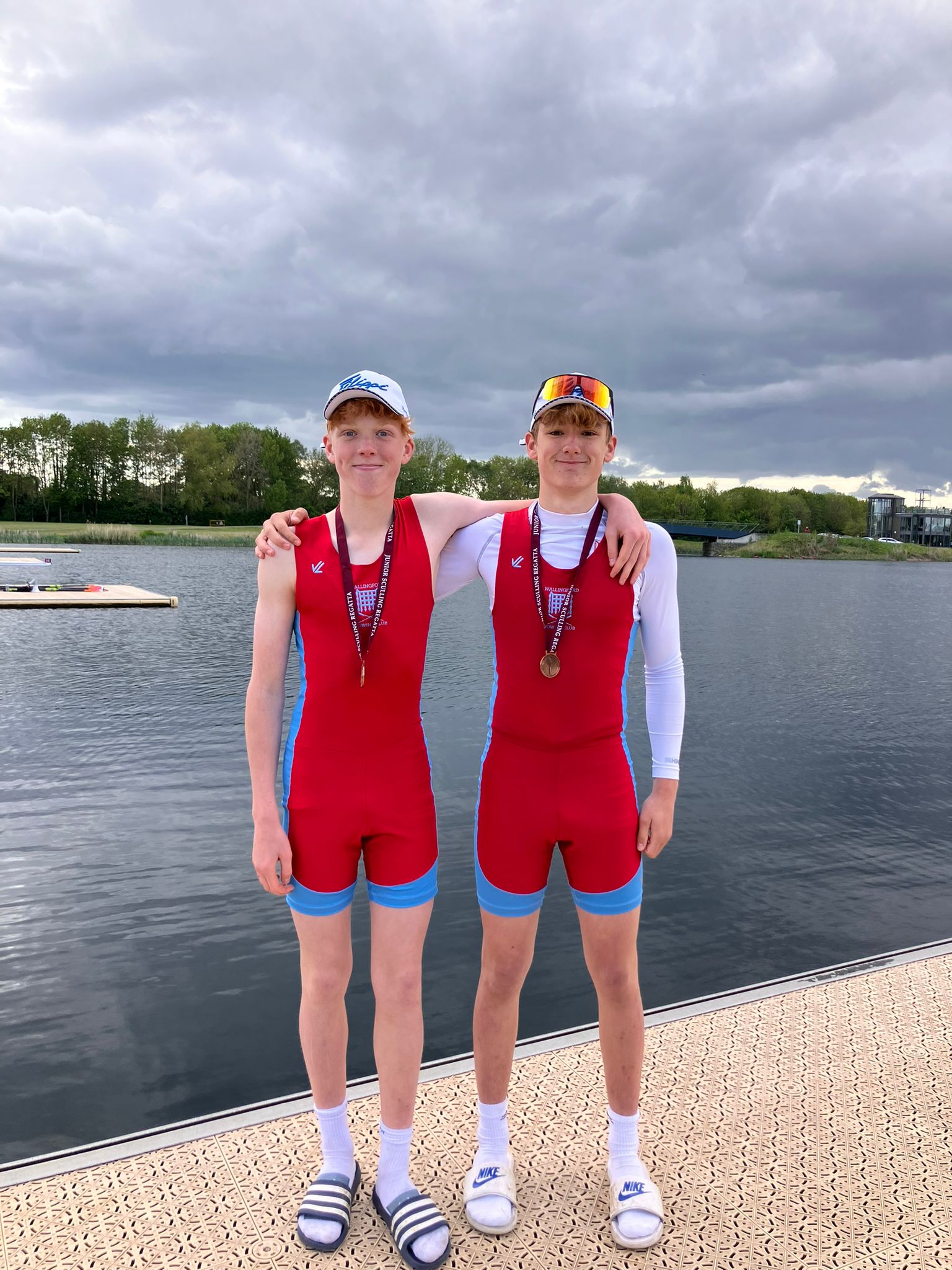 Our J14 2x of Will and George won their first national medal, a bronze. Always exciting to see our youngest at the start if their rowing career, bringing home the metal!